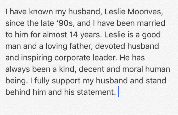 Moonves's wife, Julie Chen, issued the following statement on Twitter: